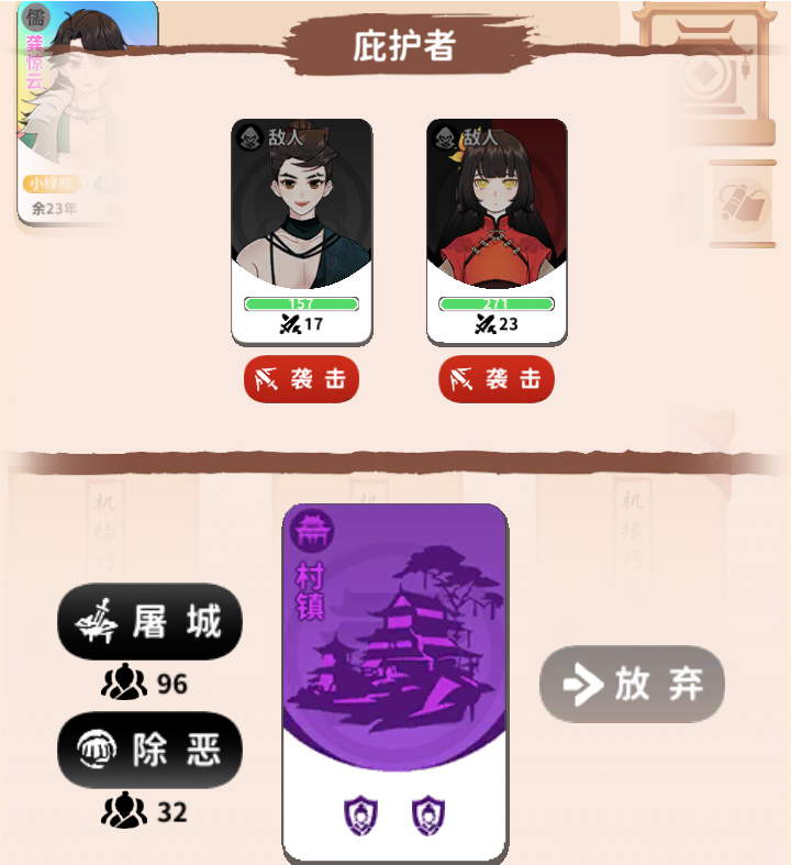 有些城池会存在庇护者,不管选择哪个选项都得先击败庇护者才行