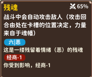残魂的攻击是按照你第一回合攻击后第一位残魂攻击三下,第二回合就是第二个残魂攻击三下,以此类推,而一直到每个残魂都攻击完三下后就不动了(没错就是不动了),这个时候就是[七情]词条的用处了