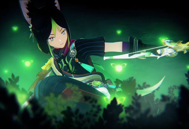 接着是甘雨,甘雨的定位是依靠蓄力重击,以及脱手元素爆发进行输出的冰元素弓箭主C。