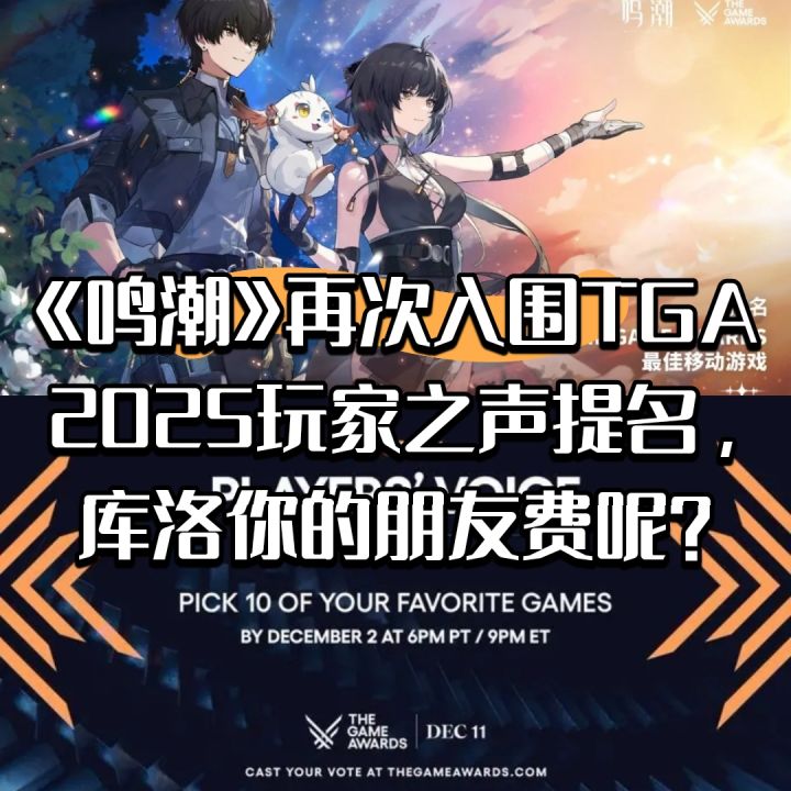 《鸣潮》再次入围TGA2025玩家之声提名!