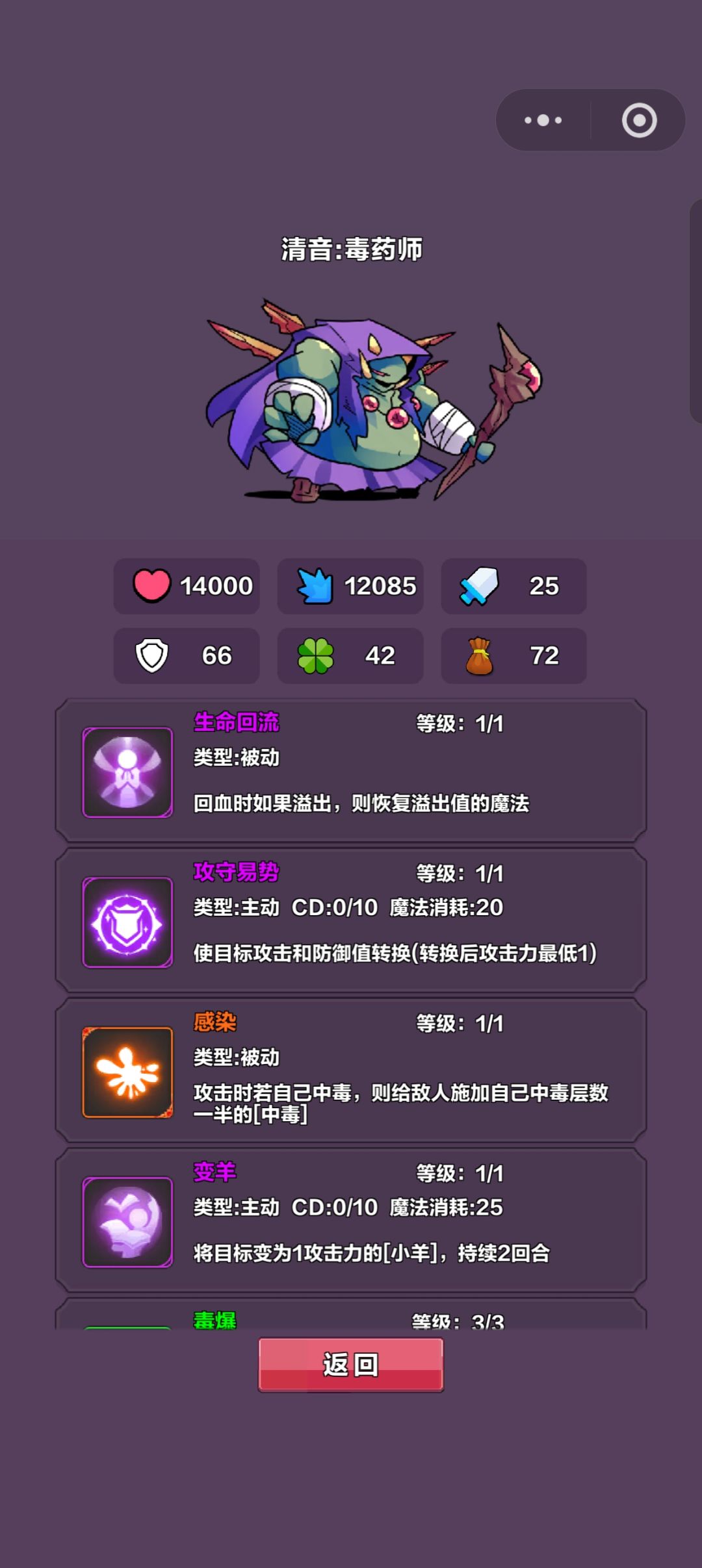毒术攻击核心技能两个:自毒术,给自己叠毒;感染,自己毒一半传染到对手