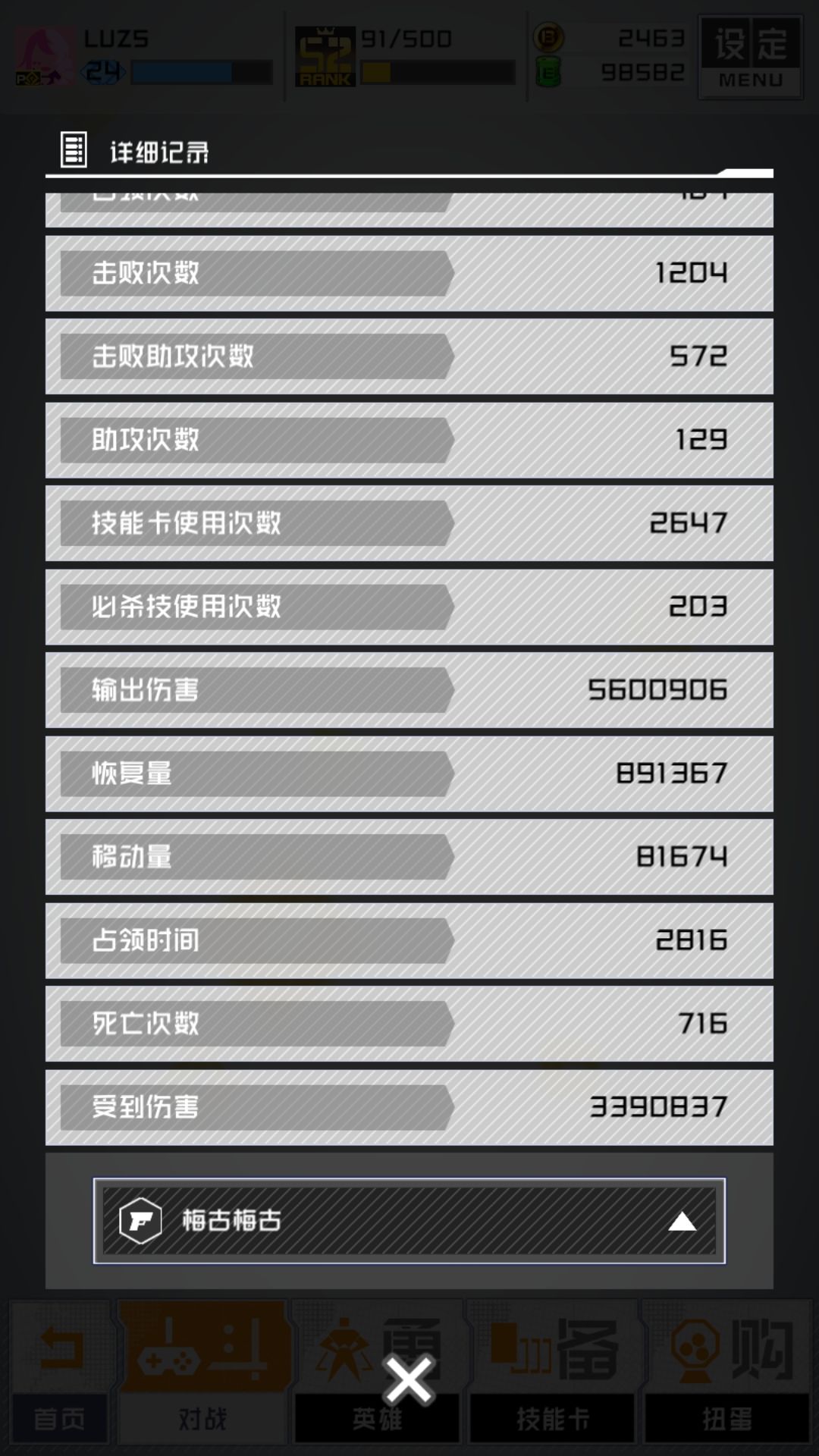 不知从什么时候起开始有了均杀4次的强迫症 每次变成3.9几就会超级难受 现在301场打完追回了4.00的击杀 就此不用了