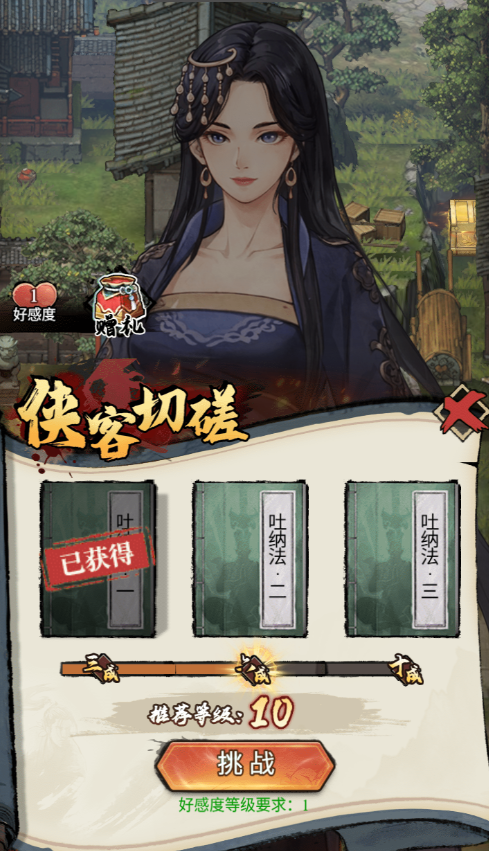 怎么玩:送礼刷好感,达标后就能挑战侠客的更高功力(分别是三成、六成、十成)。