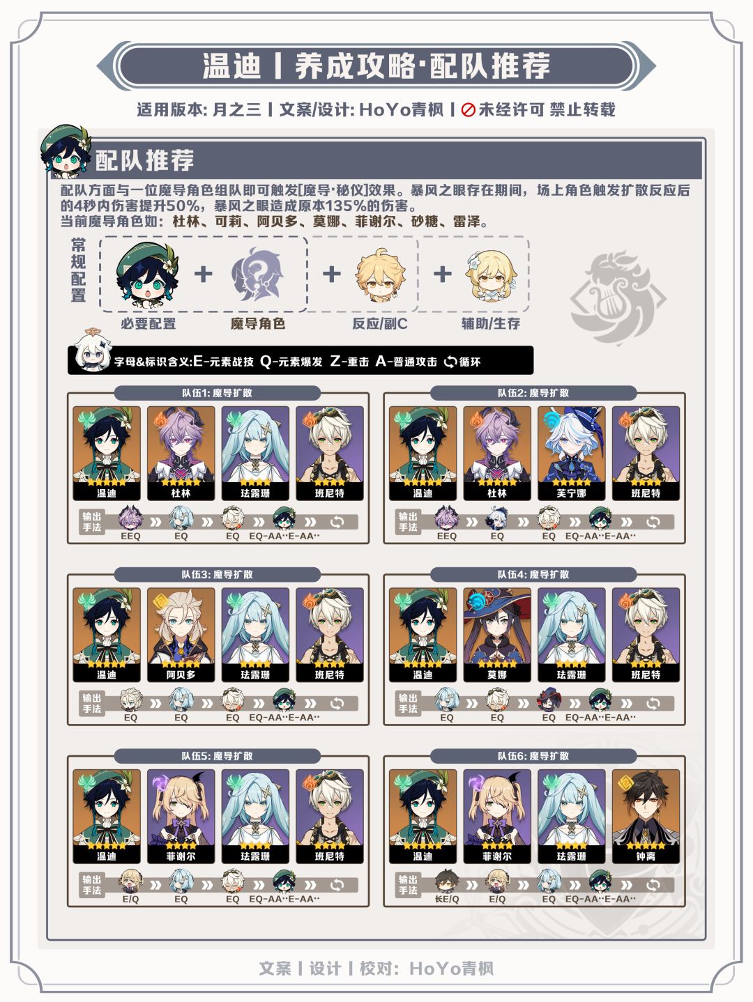 ●温迪在完成「魔女的课业」后可成为魔导角色,与另一名魔导角色组队即可触发魔导·秘仪效果,可使暴风之眼的伤害提升135%,并在风眼存在期间,触发扩散反应后获得4秒的50%增伤,以提升大招后前期的普攻伤害;
