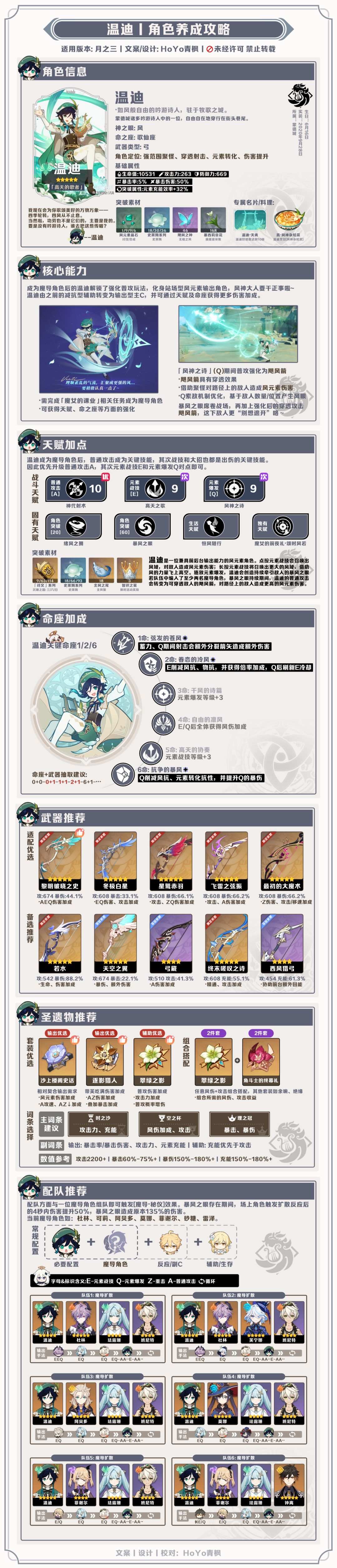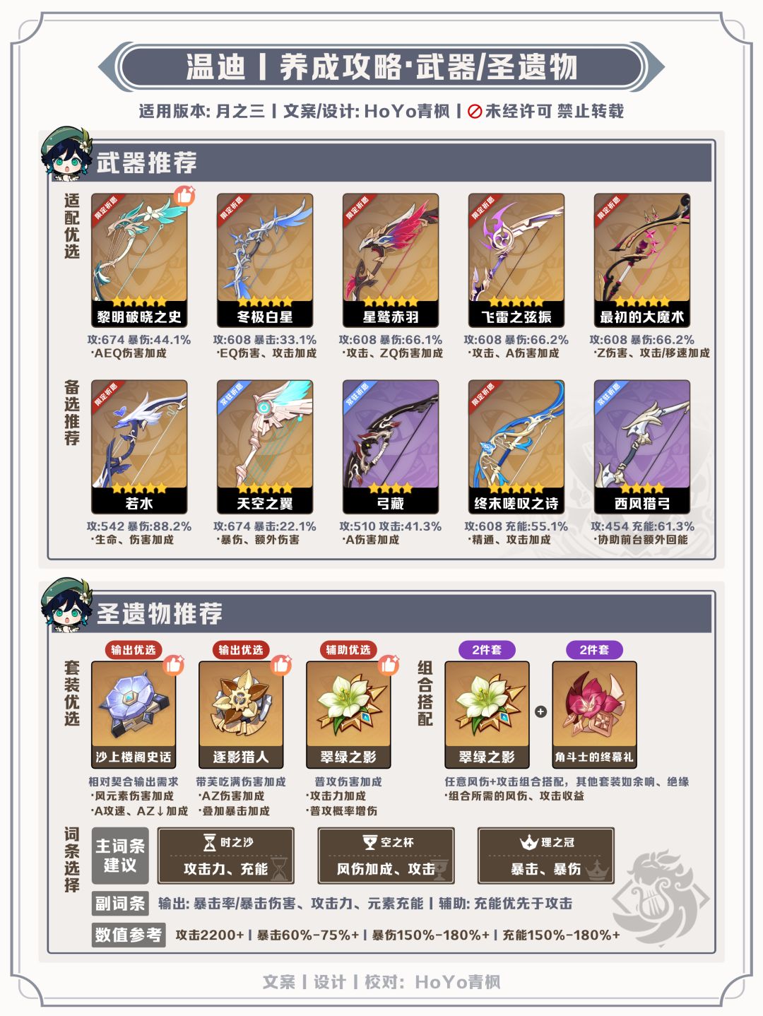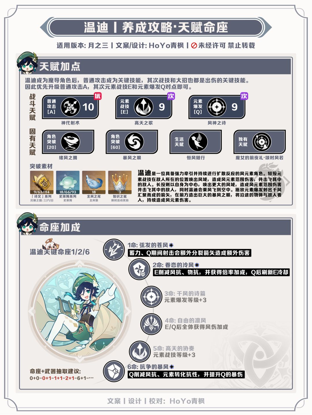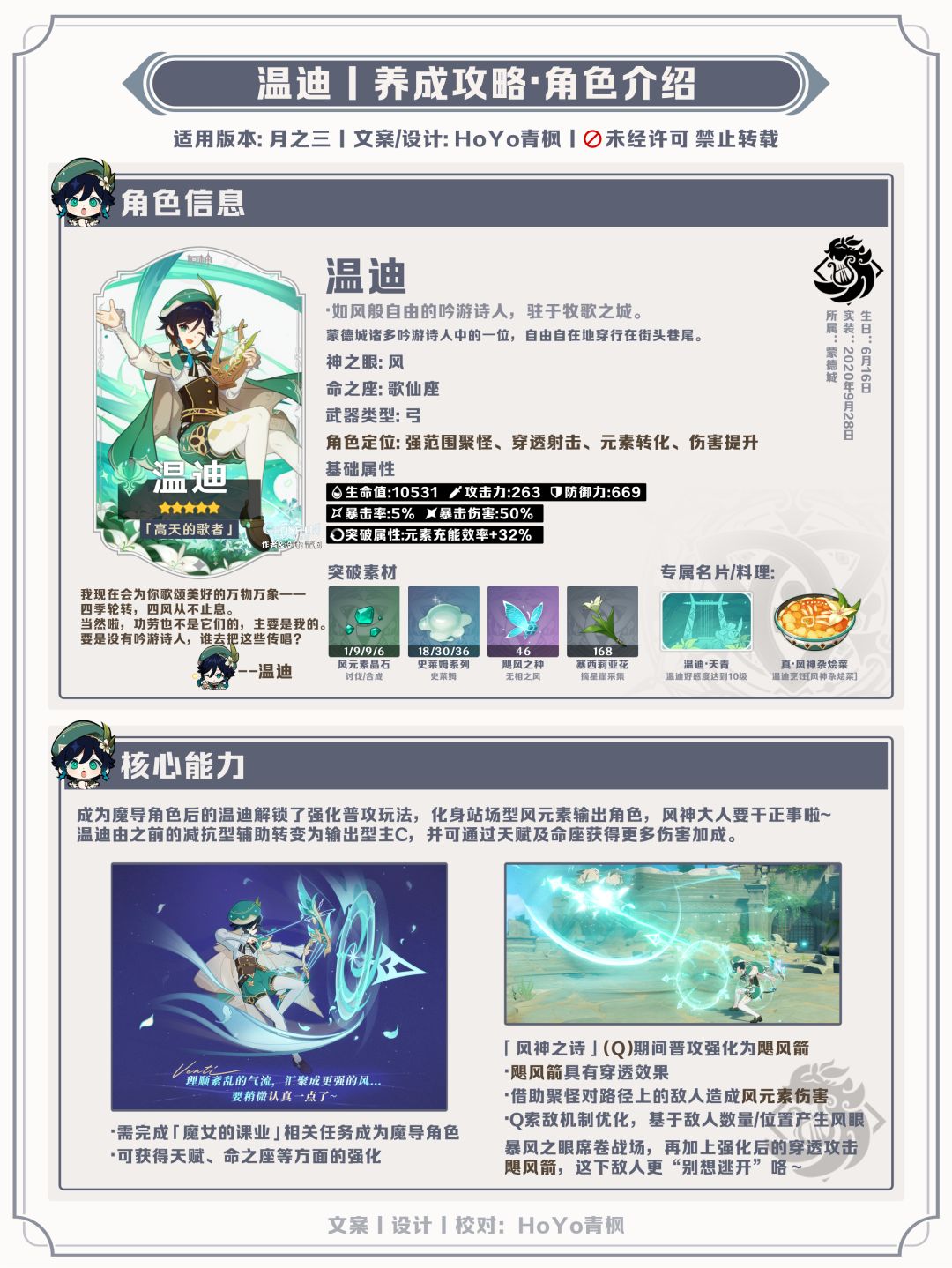 接下来以图鉴的形式简要解析「温迪」的养成参考,帮助大家快速了解角色及后续培养方向;