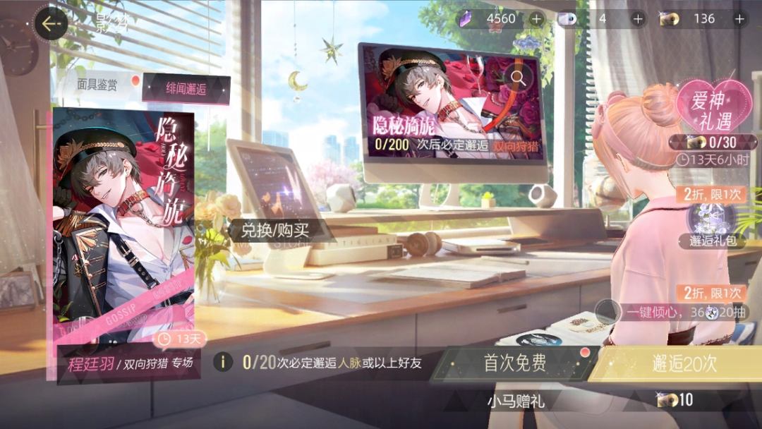 首次免费:娱记免费赠送抽卡机会,点击可进行2连邂逅;