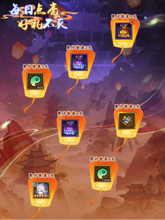 活动期间,每日登录可领取扭蛋币、勾玉、召唤卷轴、养成资源等签到好礼。