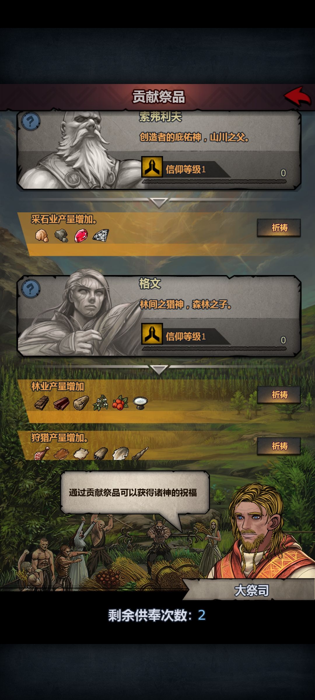 这时候丰收节先修弗索利夫神像,花岗岩够的话再修格文。然后拜神木材石头