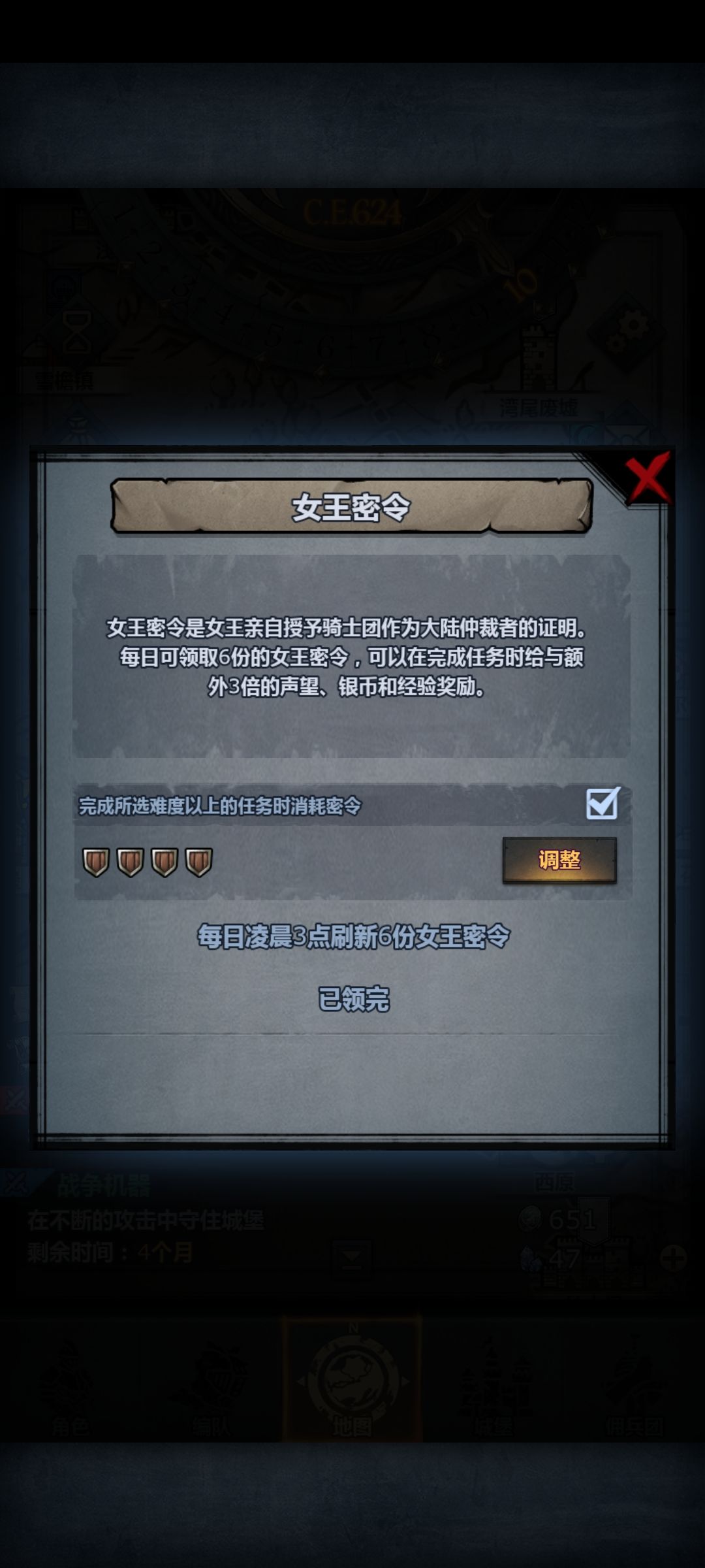 法拉四盾加100声望的可以拿密令,斩断支援是最简单的双长弓随便过,枪打出头鸟需要再来一个别的高等级的。小人的进攻除了俩长弓还需要俩高等级方阵敌人的失败和行侠仗义难度大一点要队伍里四五个高等级才行。