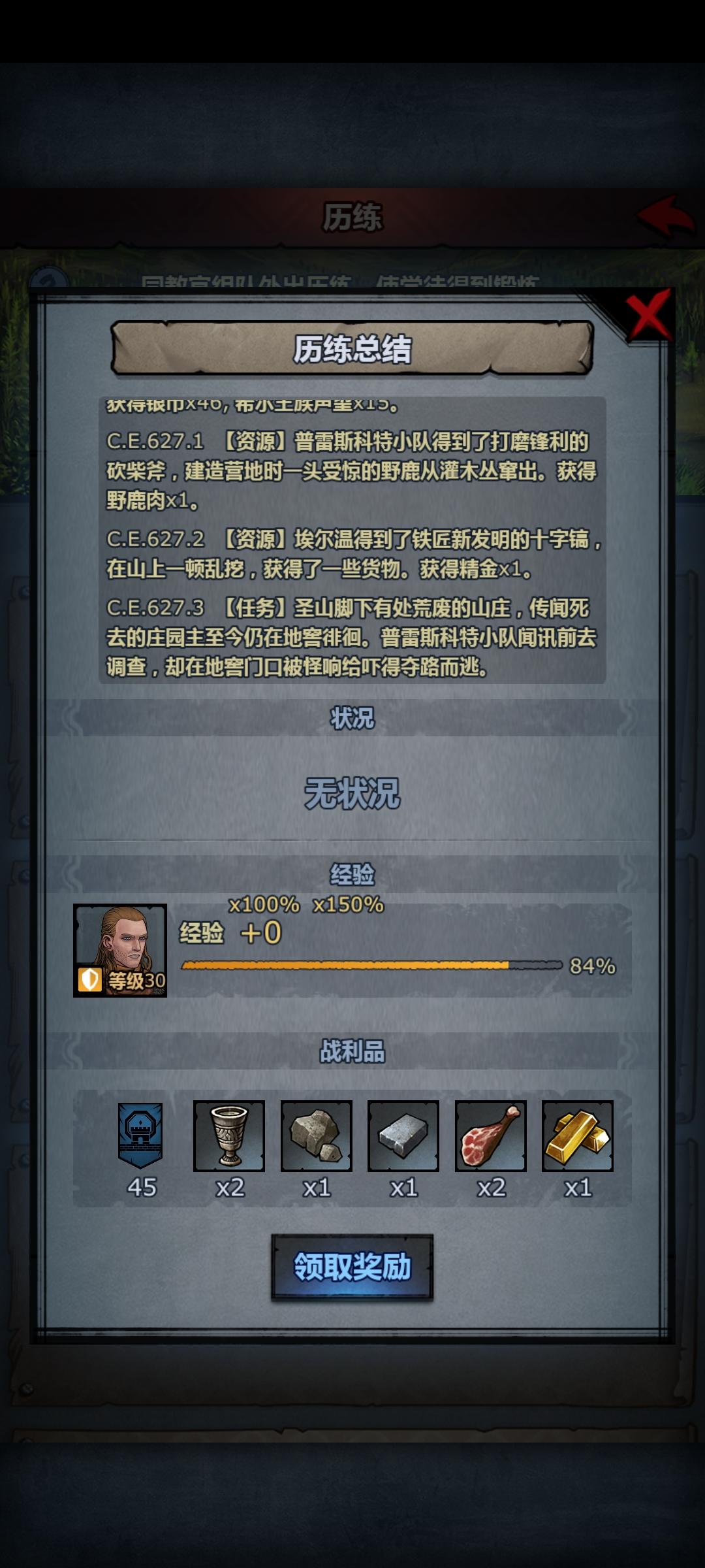 历练真的很赚,我现在刚到布克城两年,历练到精钢有十个了,花岗岩七八个的样子。后边资源不缺了历练就转牛头。