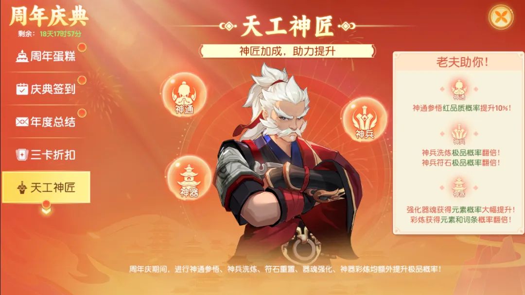 天工神匠:庆典期间,极品概率大幅度升级!