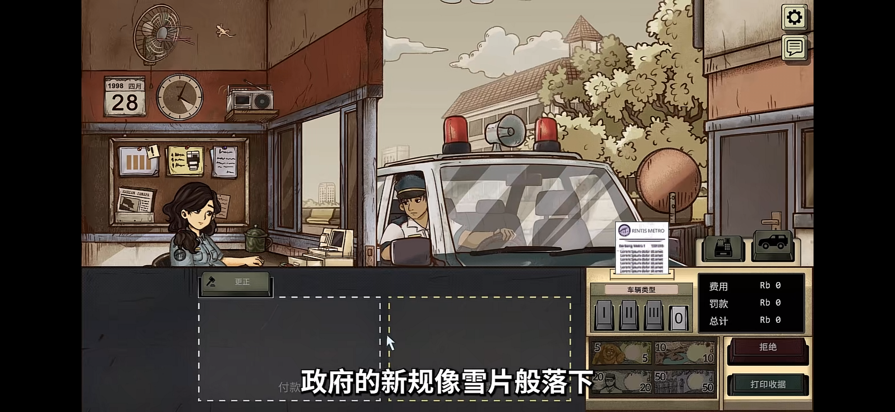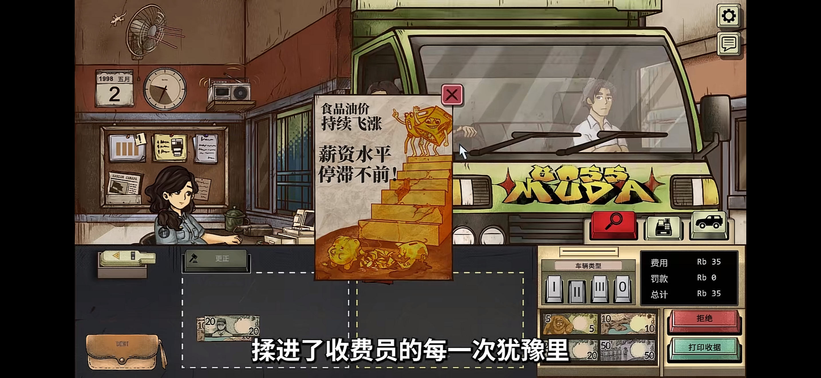 2. 核心玩法:玩法类似《请出示证件》,核心是完成收费站日常工作,像检查车辆证件、收费找零、排查违禁品等,且工作内容会逐步变复杂。玩家要靠微薄薪资支付房租、食物等开支,还要为孩子出生做筹备。游戏中频繁出现道德抉择,比如是否放行没钱缴费却有急事的人,每个决定都会影响剧情走向,还关联着多结局,游戏共15天流程,3 - 4小时可通关。