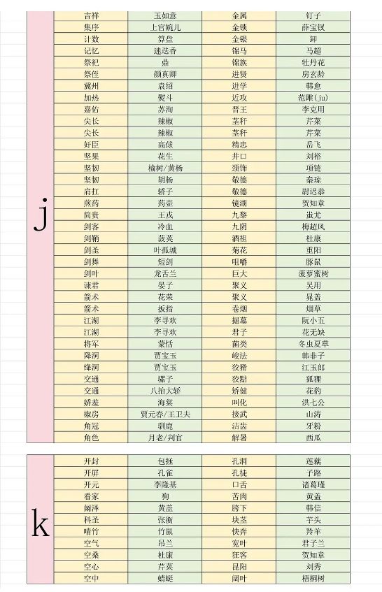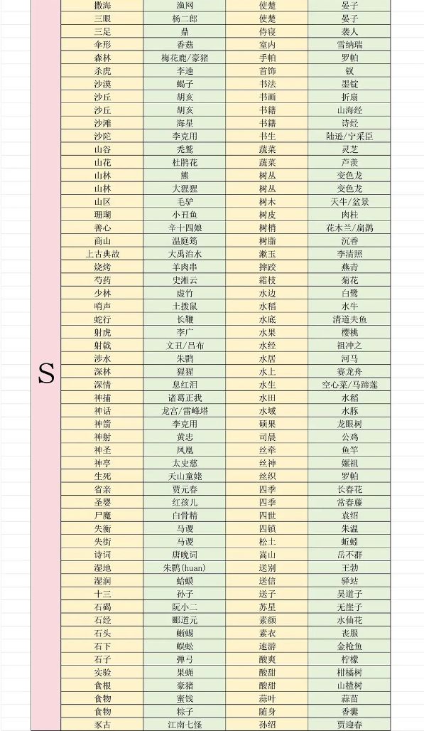 射覆对照大全(想先自己猜的先别看)