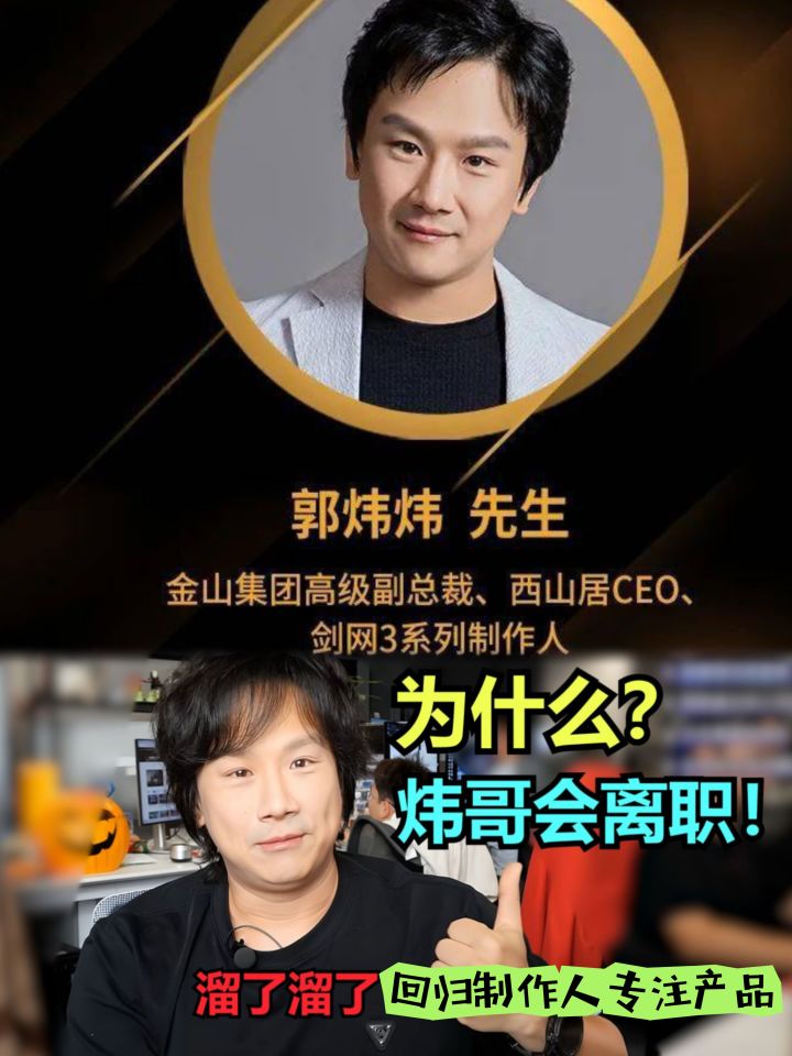 郭炜炜辞去西山居CEO,回归制作人专注产品