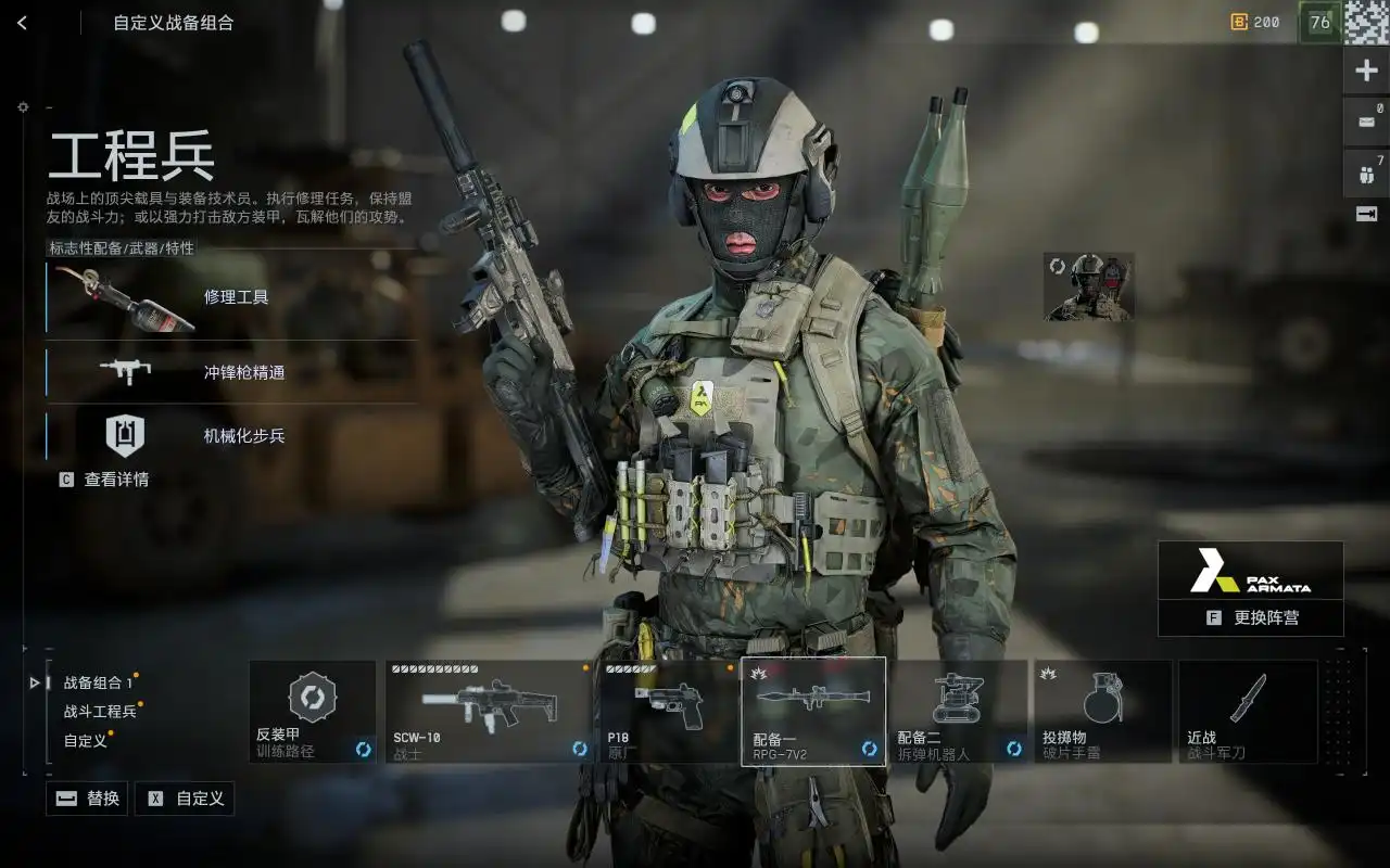 第二推荐新手玩的兵种,有很多流派和小玩具可以玩,既可以修车当焊武帝混分,也可以拿着RPG+反坦克地雷冲锋陷阵,一套丝滑小连招直接带走坦克。