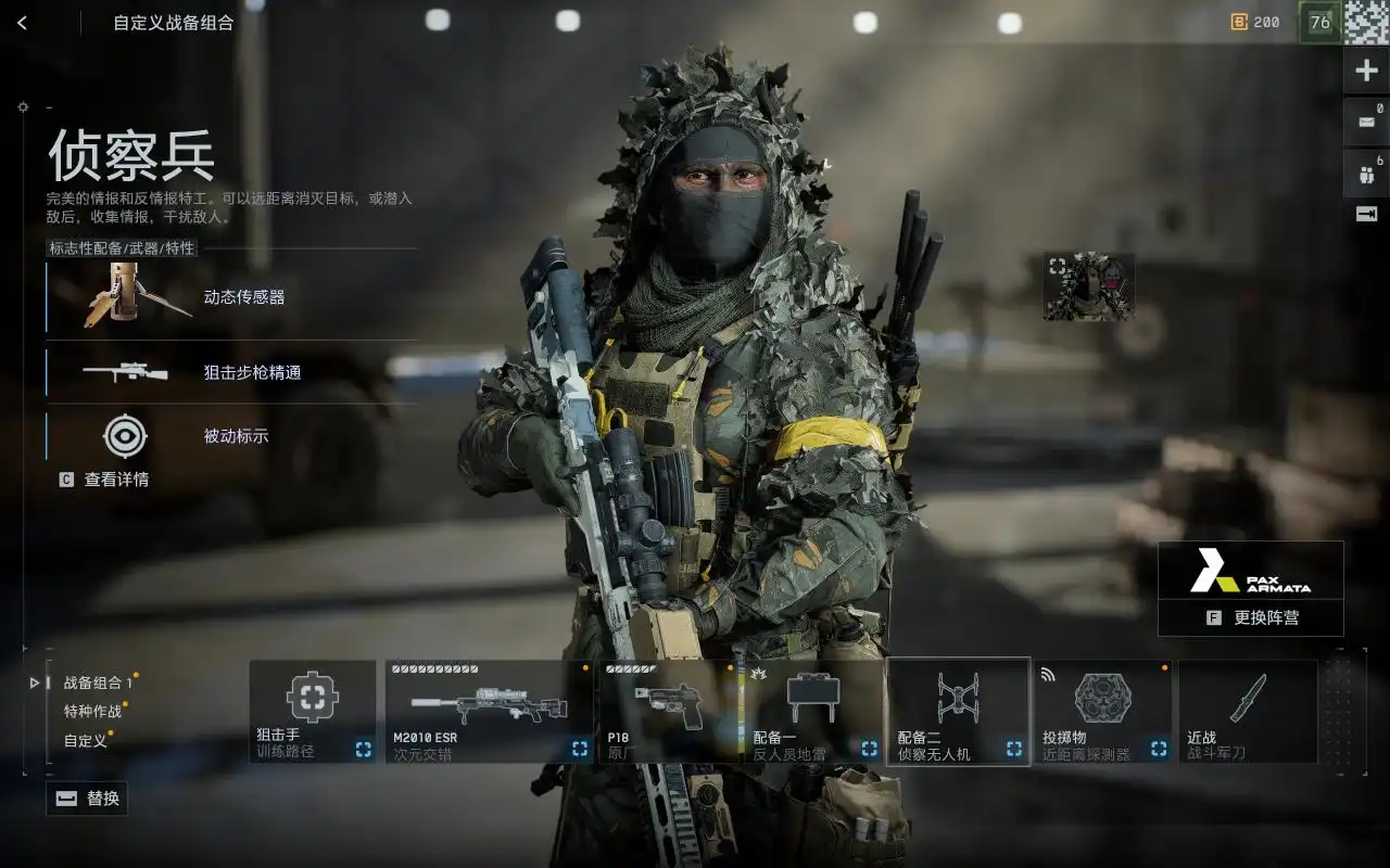 技能围绕着“视野”这方面展开,可以带个无人机飞上天标记敌人,让队友在冲锋时能看清敌人的方位不至于被偷袭。
