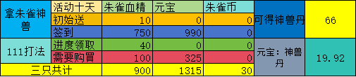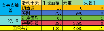 PS:(活动结束前十分钟,朱雀血精将无法购買,请合理分配好时间,提前准备好足够的朱雀血精)