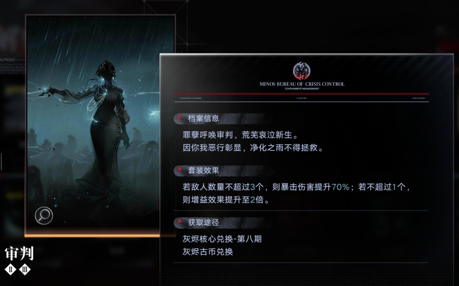暴伤类输出烙印,非常适配可以打暴击伤害类的主c,审判给的数值比较慷慨在对单的情况下效果翻倍,拥有较高的暴击伤害加成,搭配上高塔提供的暴击率可以极大降低凹暴击率的痛苦。