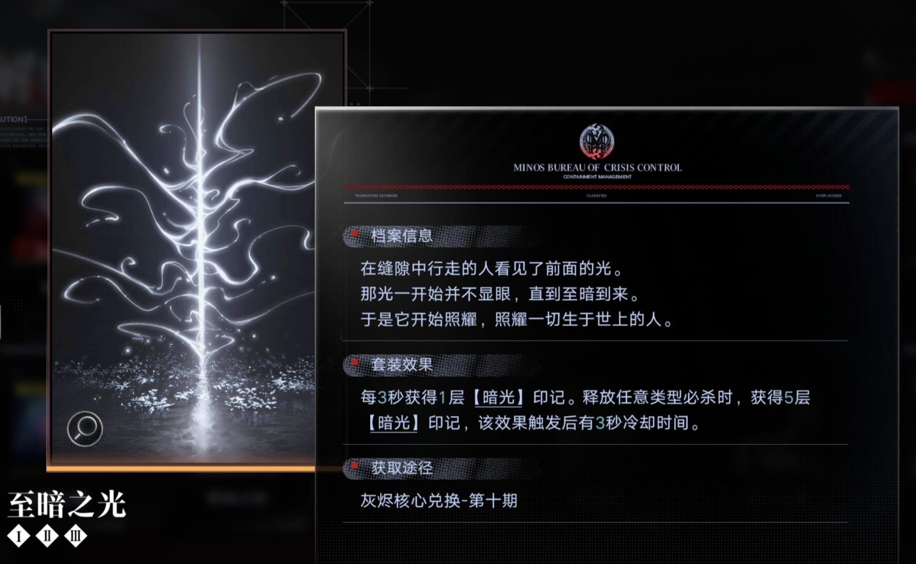 烙印界最高的山最长的河,兑换优先级极高,建议优先兑换,可以加快能量回转,任何需要快速回能的禁闭者都可以携带。