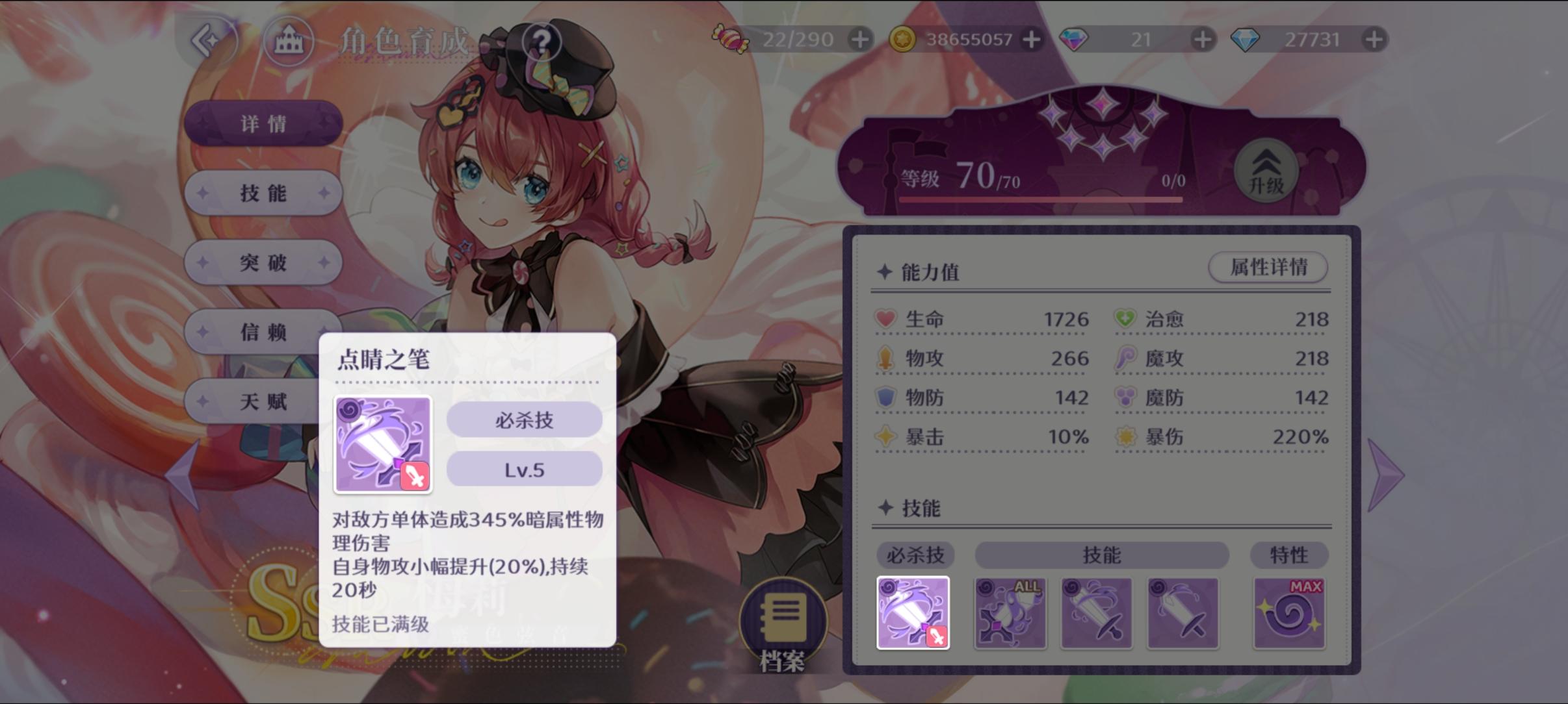 较为白板的技能组套,必杀技有一定自拐能力,作为赠送的SSR,满技能时倍率达到345%,伤害较为可观。