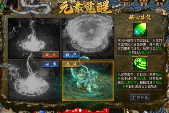 2.玩家攻击时,若自身元素的强元素高于目标的弱元素,则有概率触发元素斩杀,根据自身自然元素对目标造成百分比斩杀