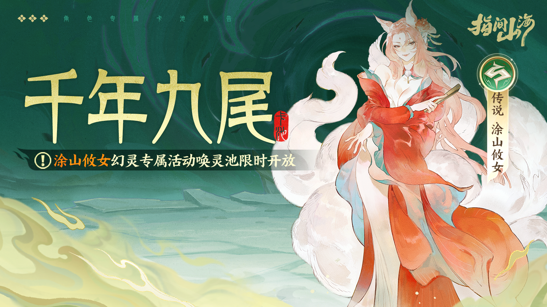 「千年九尾」-「涂山攸女」限定招募活动时间:开服后第161天~167天活动说明:活动期间内,传说幻灵「涂山攸女」专属卡池「千年九尾」开放,50次招募必得传说幻灵!首次获得传说幻灵不是「涂山攸女」时,第二次获得传说幻灵时100%为「涂山攸女」。具体可查看游戏概率公示界面。