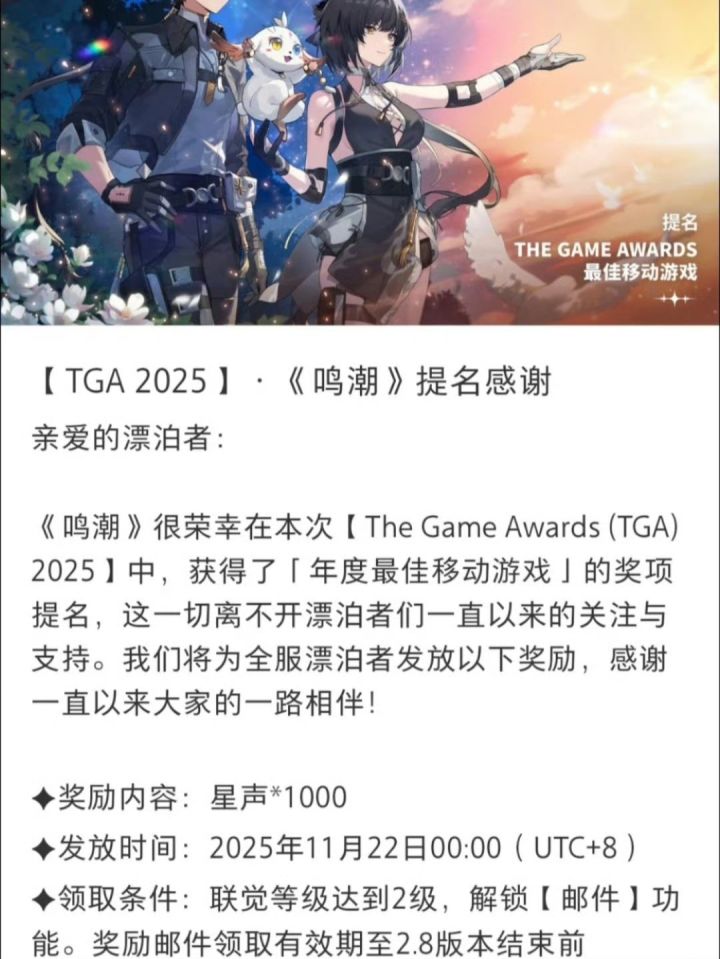 看到国产游戏入选,感觉特别骄傲,鸣潮这次好像是第二次提名了哎!不知道大家会给谁打call,投上一票呢!我个人特别支持鸣潮!