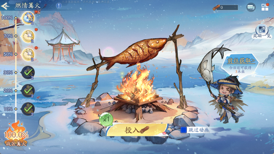 3. 全战区累计投入木柴达到指定次数后,可领取进度奖励。