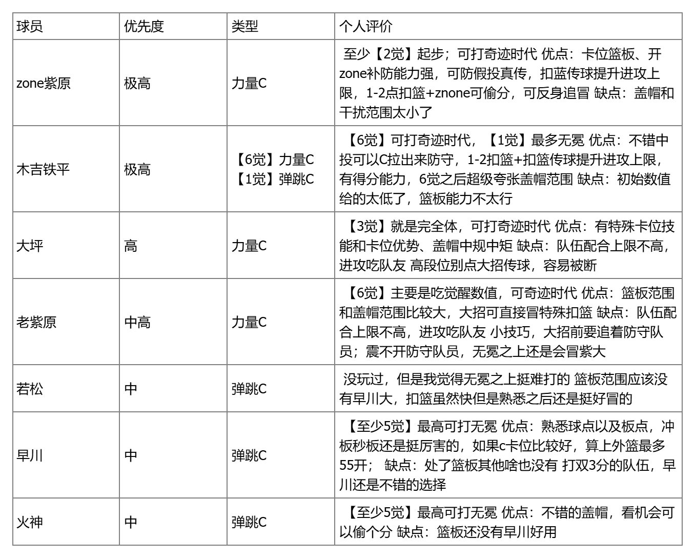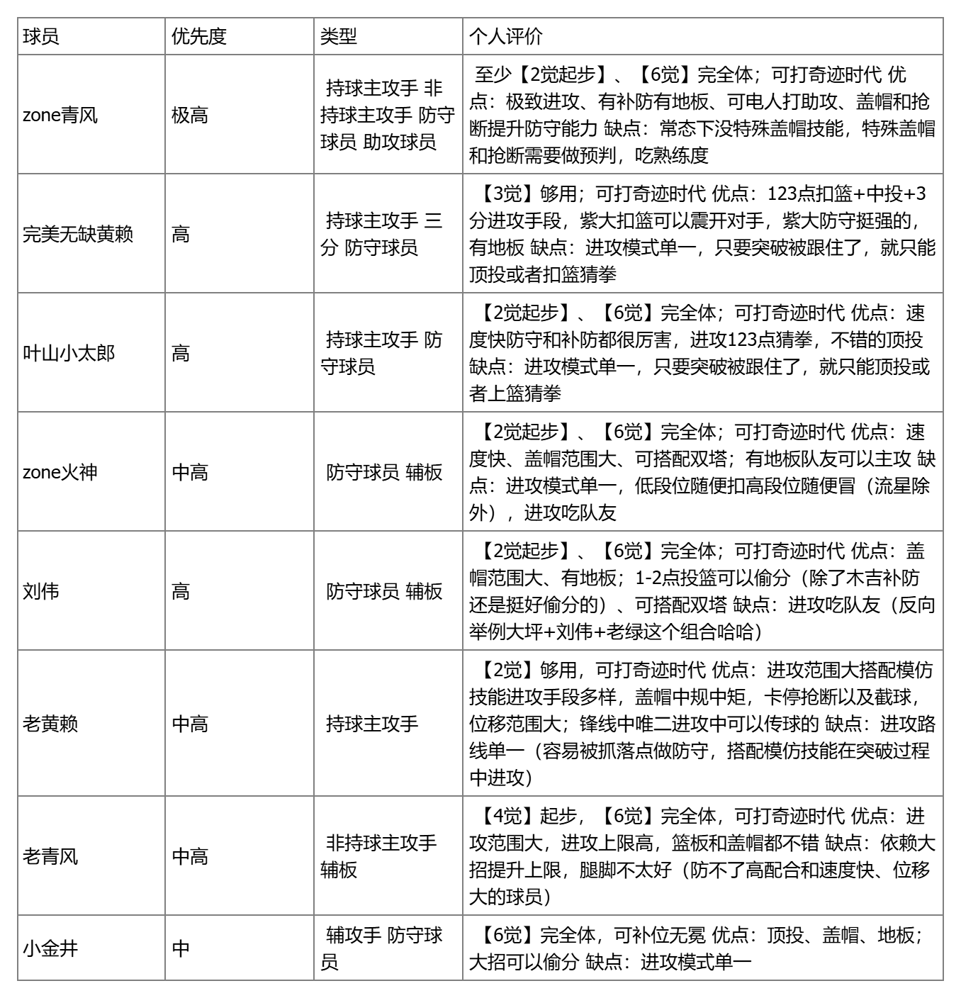(4)球员推荐(低的就不给大家推荐参考)