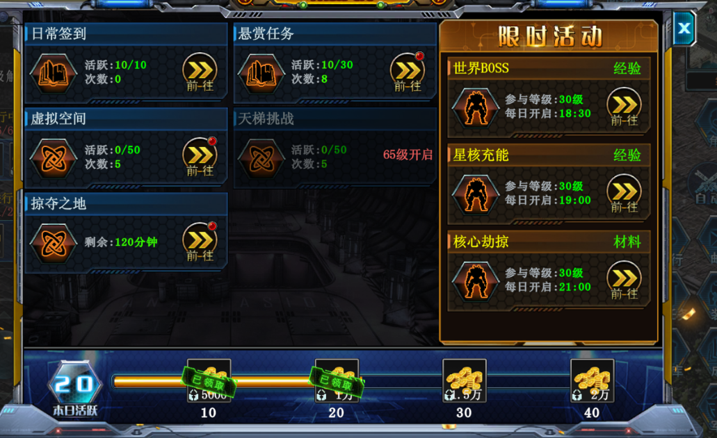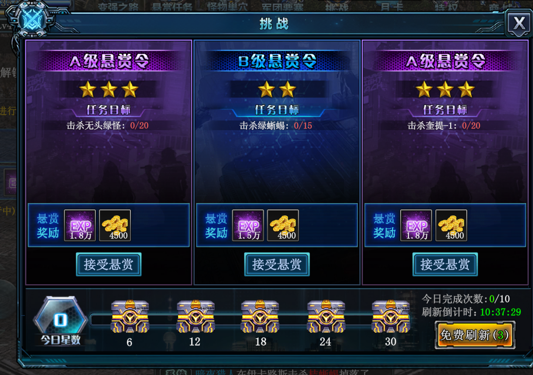 - 悬赏任务(10次):C/B/A/S级梯度奖励,经验与资源双丰收,是等级提升的核心路径。