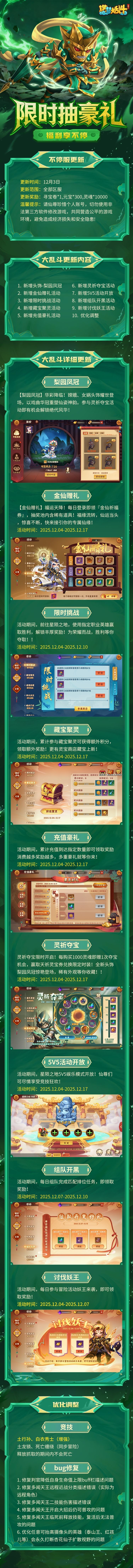 为了给仙尊提供更良好的游戏体验,《造梦大乱斗》于2025年12月3日 17:00-17:30进行不停服更新,由此造成的不便,敬请各位仙尊谅解!