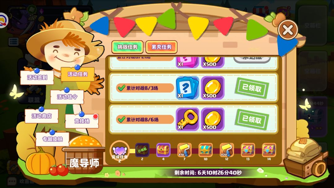 完成一些简单的任务,就可以领取数个高等宝箱、30个油刷、多份随从卡等奖励,任务没有难度,最快一天就可以拿到2个黄金宝箱、10个油刷、1个尊贵宝箱!!!