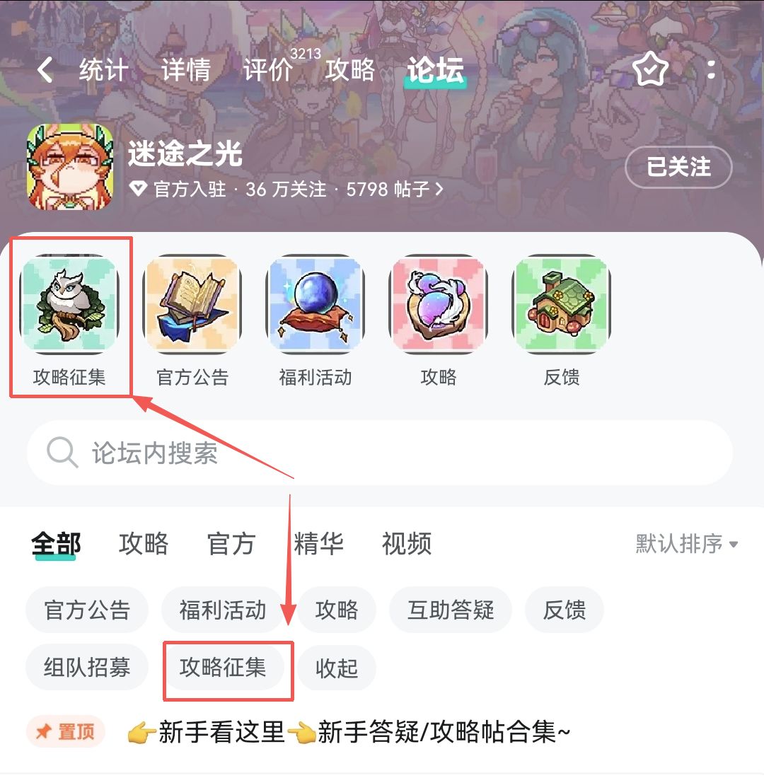 Step1:在“迷途之光”TapTap论坛攻略征集板块内单独发帖分享你的迷途攻略心得,帖子标题格式【攻略征集】xxxxxx