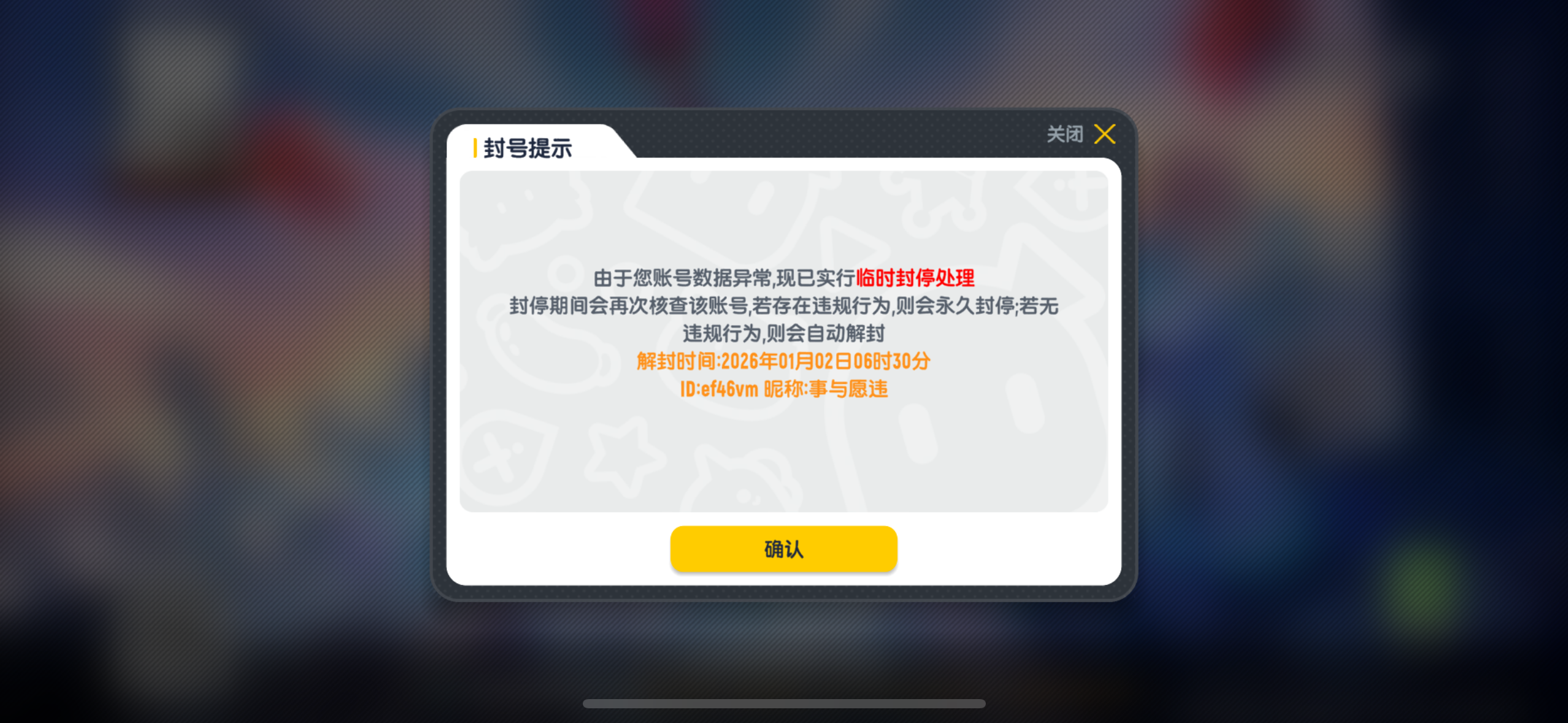 呃……就是关于我苹果18系统被封号这件事我打一个游戏收着收着装备莫名其妙被踢然后就封了我下赛季还要打榜希望给予解封吧