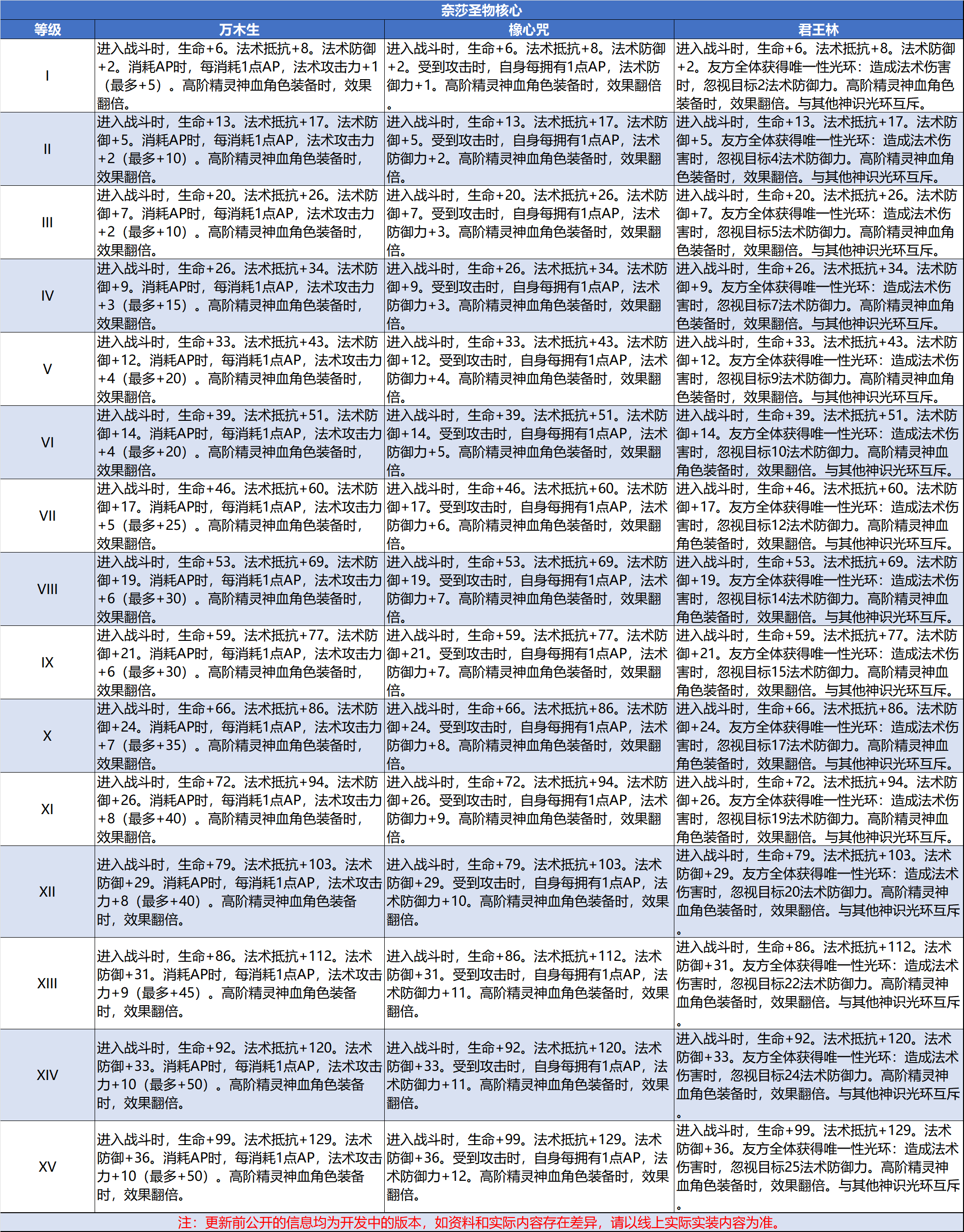更新精灵神血后,职业被动「吟游诗篇」「吟游诗篇[精通]」“根据自己感知的60%、40%、20%分别使其排名第一、第二、第三属性增加”的效果增加设定「根据自己感知点数的最大生效点数:500点」,调整以后的效果为“根据自己感知(最大生效点数:500)的60%、40%、20%分别使其排名第一、第二、第三属性增加”。