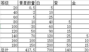 好,现在我们了解了每级需要多少材料,让我们看看升级到200级需要什么吧!