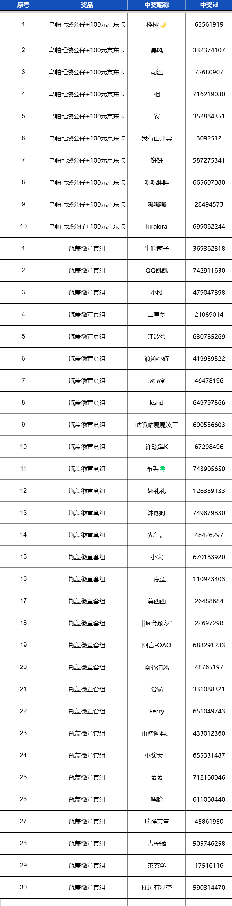 感谢大家的积极参与!恭喜以下玩家获得奖励。