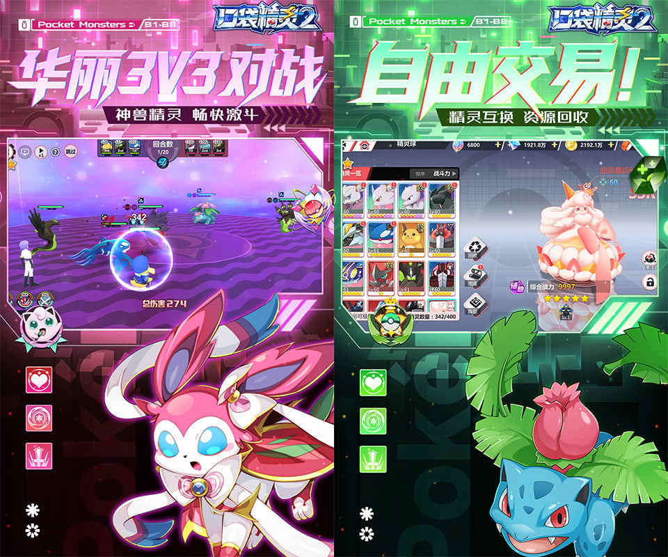 3D版!UNITY3D引擎打造,玩起来非常丝滑!有Mega进化,精灵突破最终形态,解锁全新技能!特色贸易功能,神兽、学习机、携带物自由交易。比较推荐。