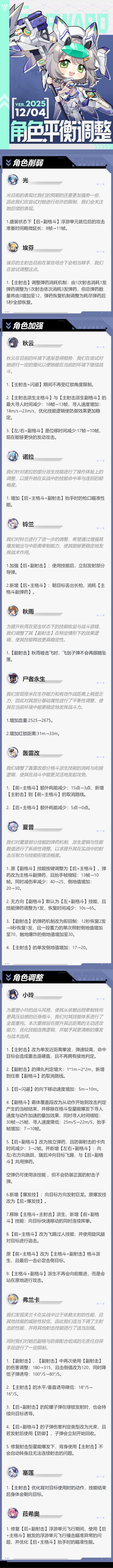 各位团长好,为了让团长们有更好的游戏体验,我们决定在12月4日游戏更新后对部分角色进行平衡调整,改动如下: