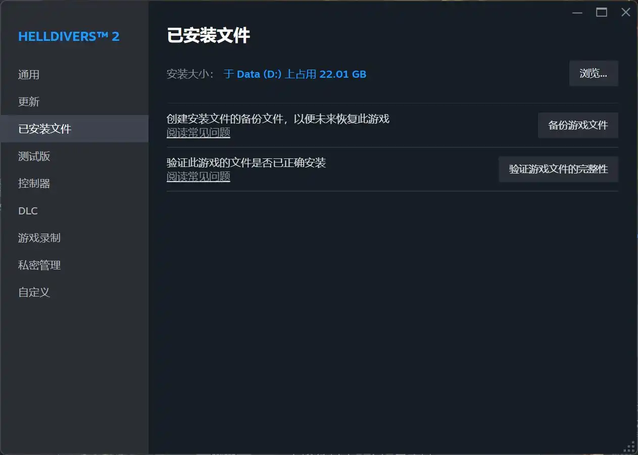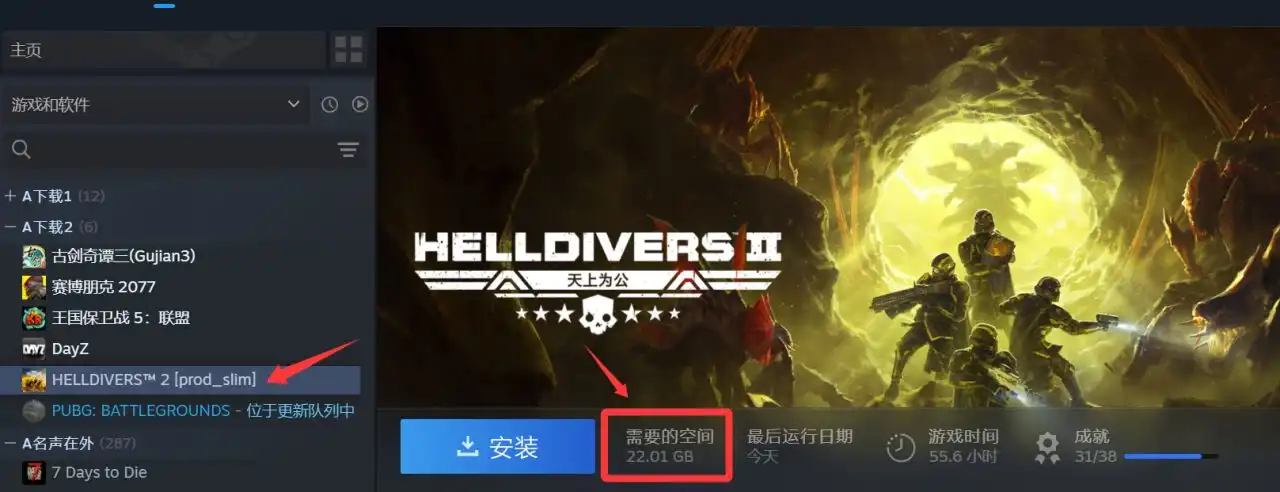 这时候,我们库中的《绝地潜兵2》就会带一个测试标志,而我们的游戏大小也减少为了惊人的22.01G,下载的时候也只要下20.7G。