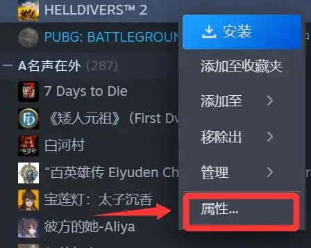 在库中找到《绝地潜兵2》(《HELLDIVERS2》)并右键点击“属性”。第二步: