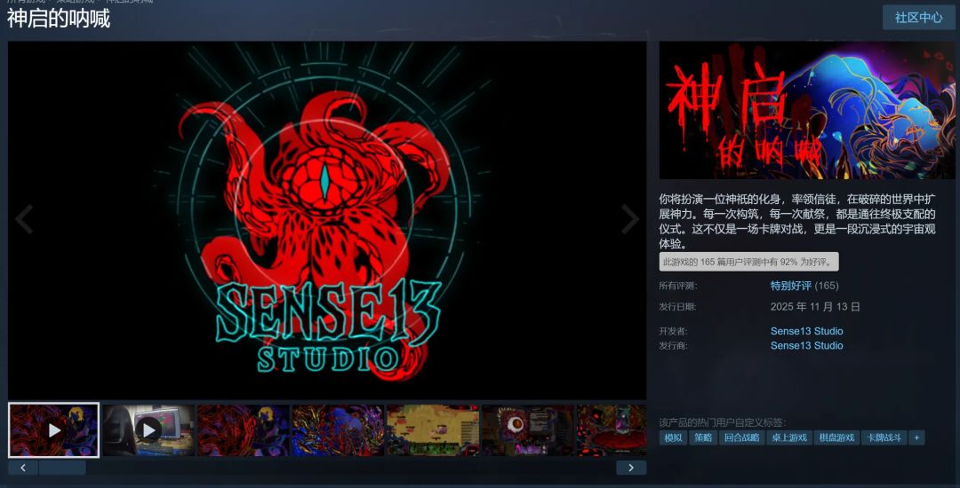 哈喽,大家好哇,就在前不久,一款以克苏鲁神话为题材的卡牌策略独立游戏《神启的呐喊》正式上线Steam了。目前游戏好评率,在一众的克系题材游戏中可以说是很不错了。