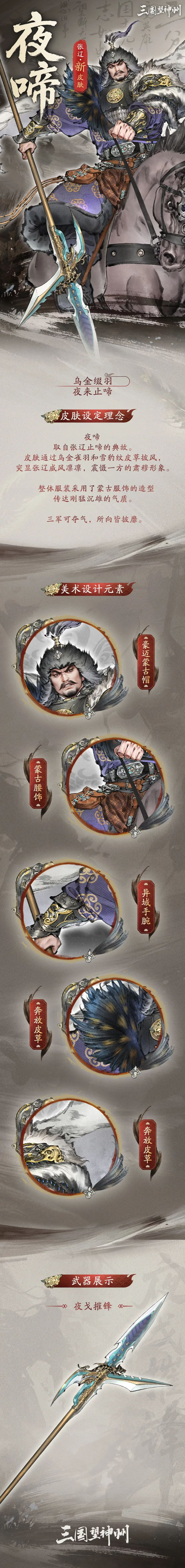 乌金缀羽,夜来止啼。全新张辽皮肤随新限时活动【单骑破阵】来袭