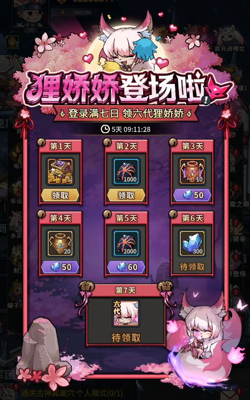 活动期间每日登录签到即可累计签到天数,最高可得六代狸娇娇!