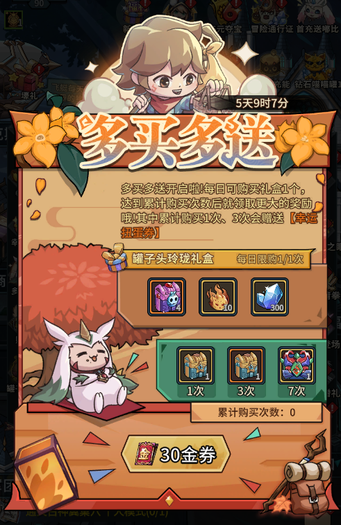 1、多买多送,每日购买罐子头玲珑礼盒,最高可领取黄金技能书礼盒