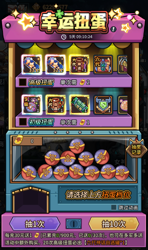 五、幸运扭蛋充就送!6代神话罐、9级宝石倾情回馈