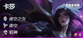 卡莎:Lv8登场一个携带三件装备的狙神单位