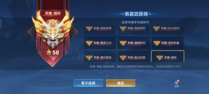 作为一个单排混子辅助,今天也是成为王者50星巨佬了。发个帖子记录一下。