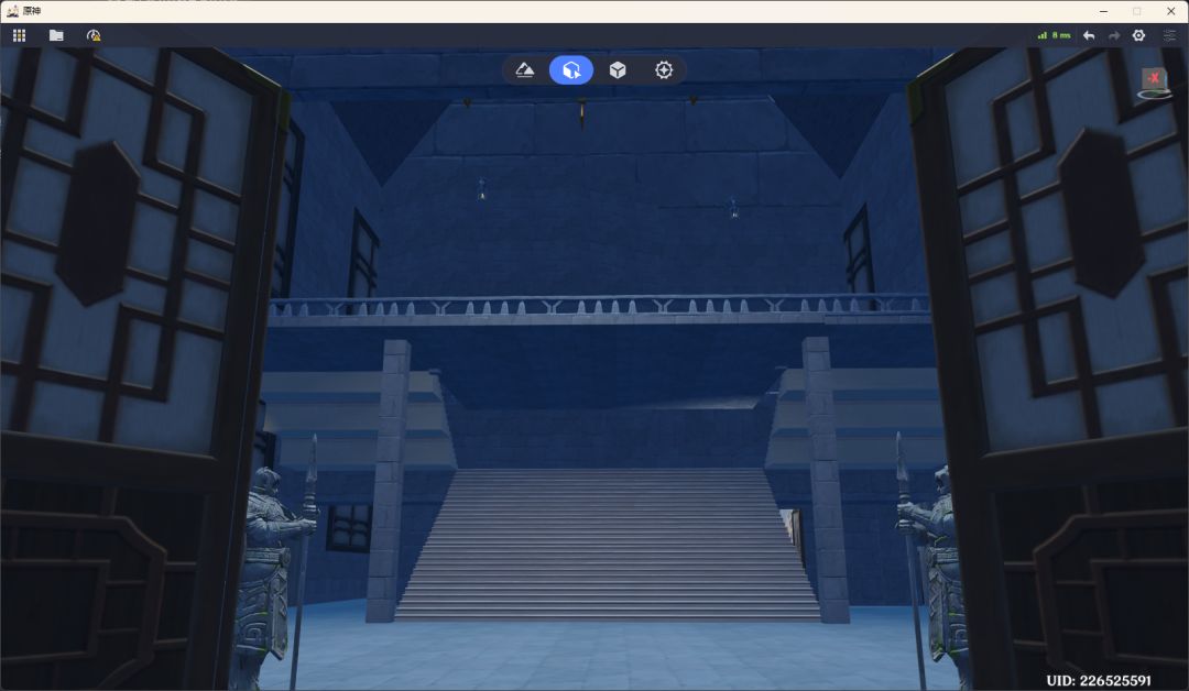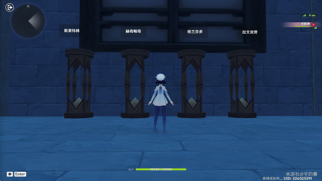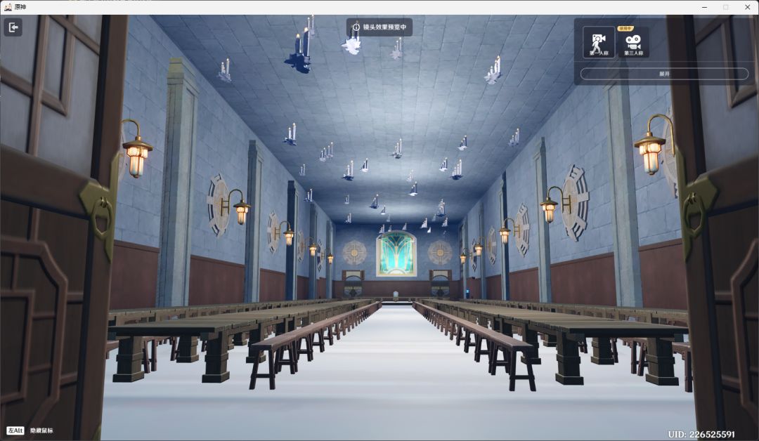本次demo开放区域为上山围墙+礼堂建筑区域,其他区域仅存在粗模标注位置。