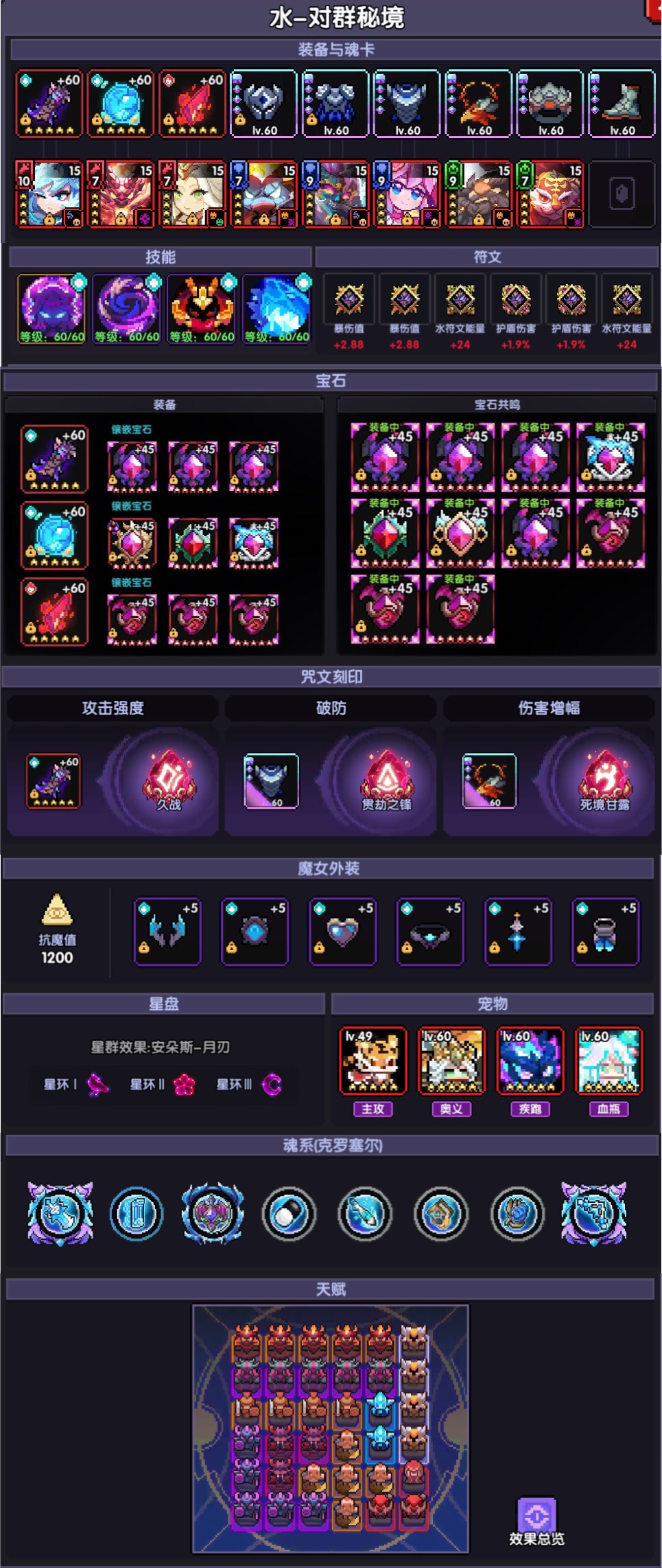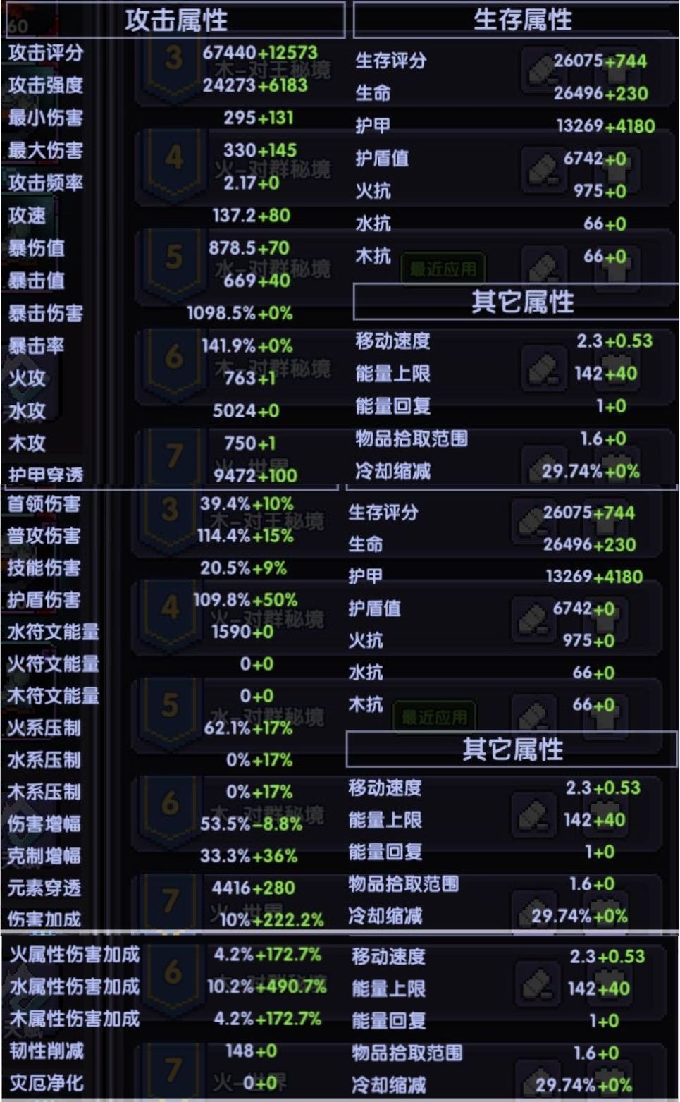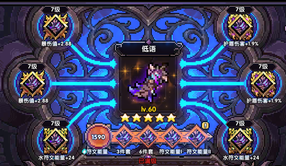 这里调试面板需要根据条件,左上角小符文选择暴击很亏,建议如果暴击值缺口不大,优先将大符文的右上角进行更换或者小屋开启buff。